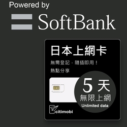 【citimobi 上網卡】日本5天上網吃到飽不限量$399
