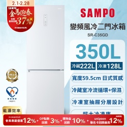 SAMPO聲寶 一級變頻350L玻璃兩門觸控面板上冷藏下冷凍冰箱 SR-C35GD 琉璃白含基本安裝+舊機回收$23,310$24,536