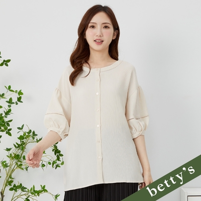 betty’s貝蒂思 細壓紋蕾絲壓線雪紡圓領襯衫(米白)$546