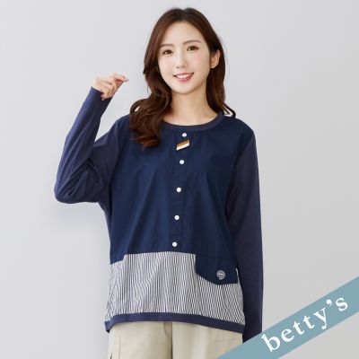 KeyWear奇威名品 拼接分割結構長袖襯衫-深藍色