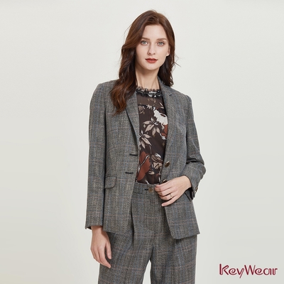 KeyWear奇威名品 帶蔥格子面料長袖外套西裝-綜合色