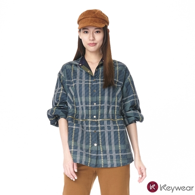 KeyWear奇威名品 格紋拉鏈裝飾長袖外套-深綠色