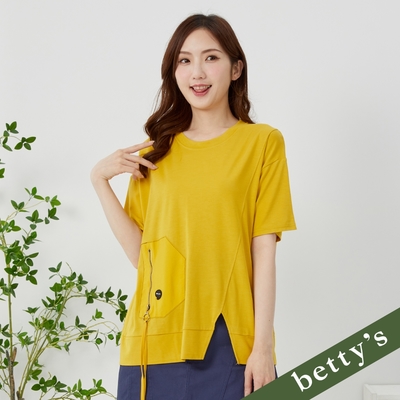 betty’s貝蒂思 下擺開衩口袋拉鍊流蘇寬鬆T-shirt(黃色)$466