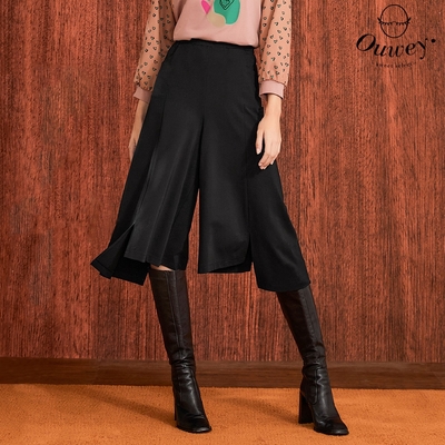 OUWEY歐薇 下擺鋸齒多片剪裁縲縈八分寬褲(黑色;S-L)3223066730$580