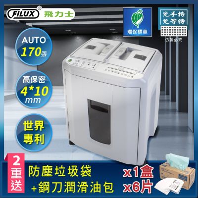【原廠 FILUX 飛力士】免手持免等待170張全自動碎紙機 A-Q170X(高保密細密狀)