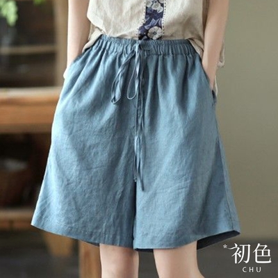 初色 文藝棉麻風寬鬆闊腿薄短褲-共6色-61871(M-2XL可選)$299