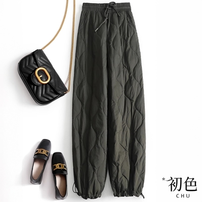 初色 防風保暖菱格紋壓線鬆緊腰束口褲腳寬褲長褲-共2色-32357(M-2XL可選)$369