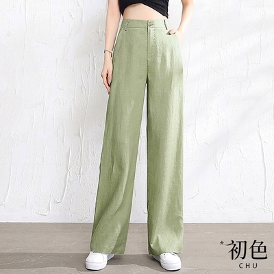 初色 清涼感棉麻風高腰涼爽透氣休閒闊腿褲寬褲長褲-共2色-70087(M-2XL可選)