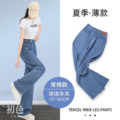 初色 垂感素色薄款闊腿牛仔褲長褲-共2色-69711(M-2XL可選)