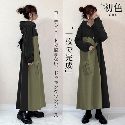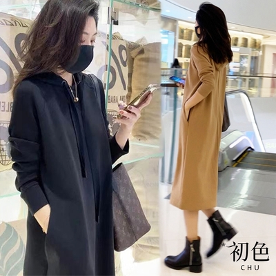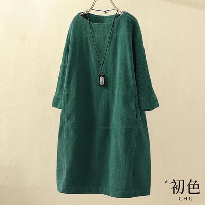 初色 復古燈芯絨寬鬆顯瘦圓領素色長袖大碼連身裙洋裝-共8色-32939(M-2XL可選)$46776折