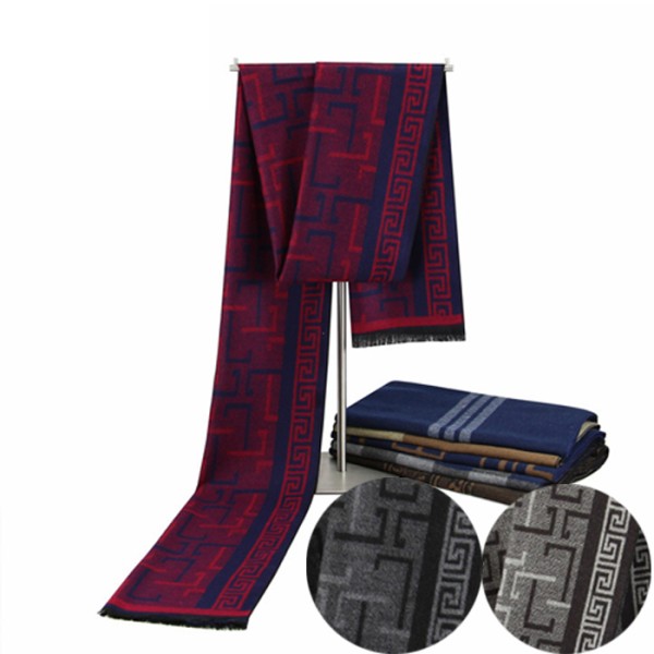 開斯米羊絨雙色雙面法式緹花圍巾 (黑灰 紅藍 淺灰)三色