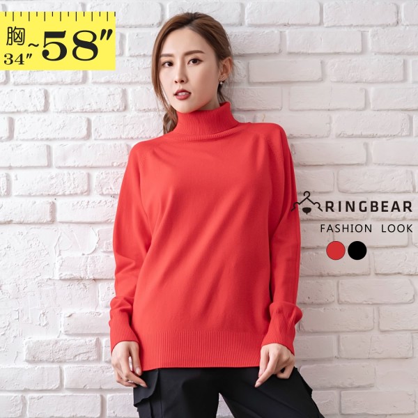 商店高領毛衣--純色簡約柔軟舒適寬鬆羅紋高領長袖針織毛衣(黑.紅L-5L)-X575眼圈熊中大尺碼