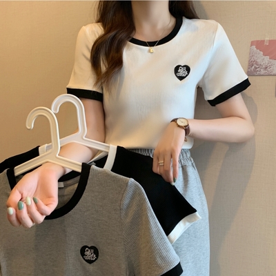 [韓國精品組合]【韓國K.W.】韓國空運晶燦輕膚棉上衣(假兩件/刺繡/印花圓領/V領上衣T恤)