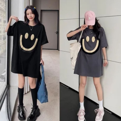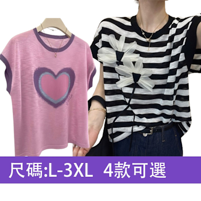 [韓國精品組合]【韓國K.W.】天絲棉花版夏季寬鬆上衣中大尺碼-C(休閒/T恤/印花/小香風)