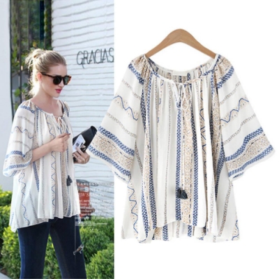 [韓國精品組合]【韓國K.W.】天絲棉好氣色印花上衣中大尺碼-B(休閒/T恤/印花/小香風)