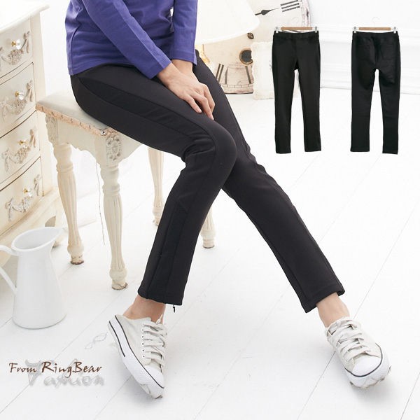 MOCO素色鬆緊腰抽繩褲管側開叉垂綴感羅紋棉質彈性休閒直筒褲L~4XL