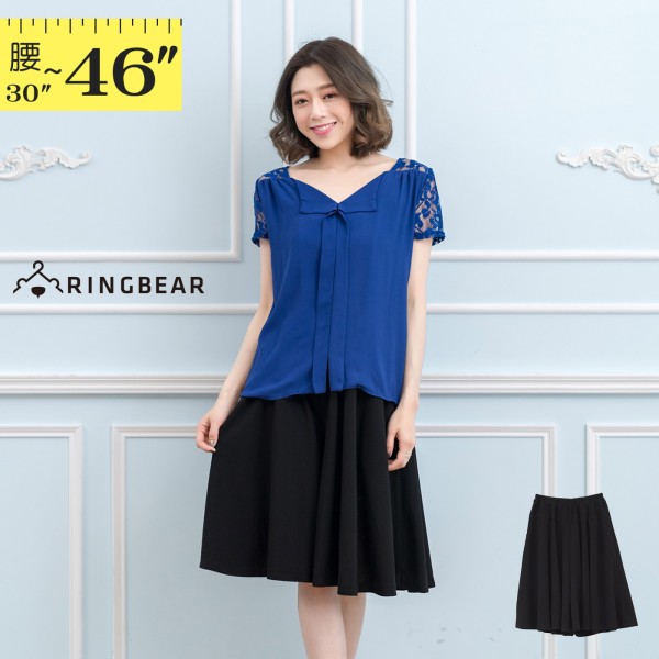MOCO素色鬆緊腰釦環綁帶腰打摺寬百摺闊腿寬褲裙L~3L
