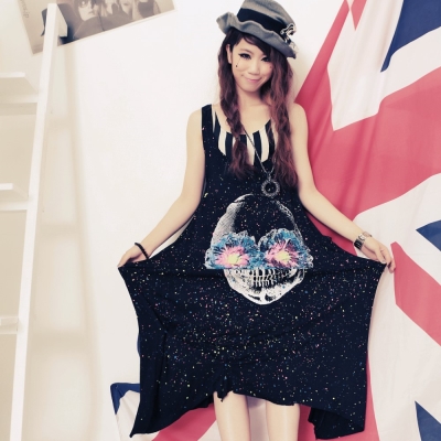 古著 中大尺碼 火焰潑墨刷色背心洋裝