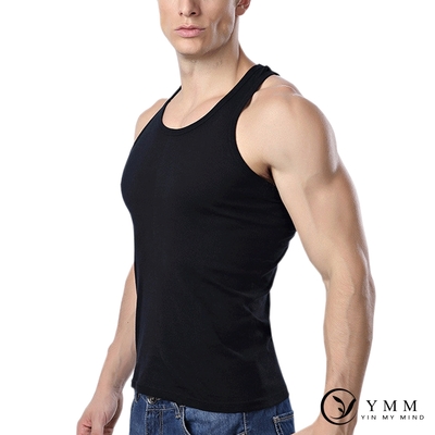 YMM 純棉男內衣透氣立體剪裁背心-黑
