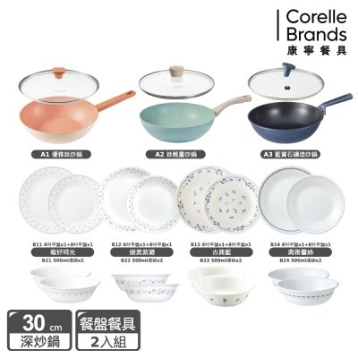 【美國康寧】不沾炒鍋+餐盤組-(A+B任選均一價)(30cm不沾炒鍋+含蓋)