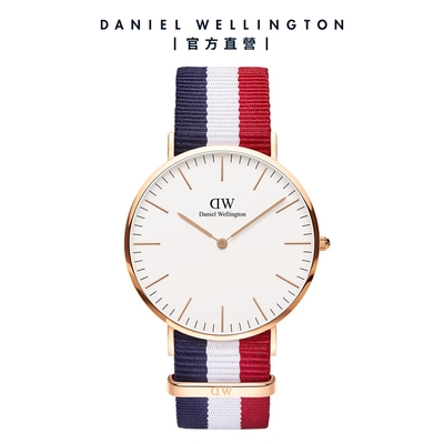 Daniel Wellington DW 手錶 Classic Cambridge 40mm經典藍白紅織紋錶-白錶盤-玫瑰金框 DW00100003$2,745$3,045