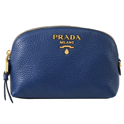 PRADA 金屬LOGO荔枝牛皮貝殼造型拉鍊萬用包/化妝包(藍)