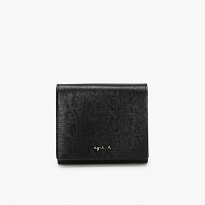agnes b. Voyage b. logo防刮皮革三層短夾(黑色)$4,606