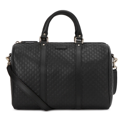 【GUCCI 古馳】449646 經典Guccissima系列小LOGO牛皮手提/斜背兩用包(黑色)