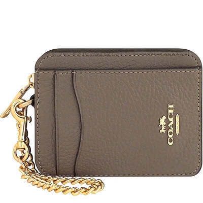 COACH 拿鐵色荔枝紋皮革金屬鏈帶證件卡夾/零錢包