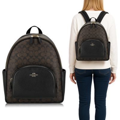 COACH 經典 PVC / COURT 後背包(中款/深咖)