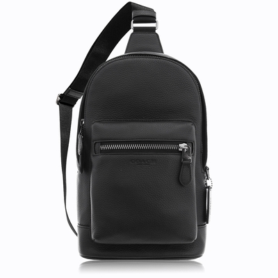 COACH 經典浮雕C LOGO前拉鍊男款斜背包(黑)