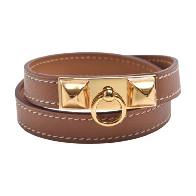 HERMES 經典Rivale Double Tour系列Swift小牛皮金鉚釘雙圈手鍊/手環(金棕)