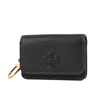 TORY BURCH Ella Bio 可吊掛雙T徽標皮革拉鍊卡片夾/零錢包(黑色)
