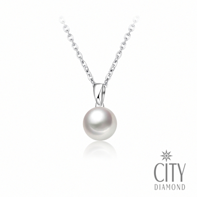 【City Diamond 引雅】日本AKOYA珍珠7.5-8.5MM白K金墜 墜鍊 項鍊(珠潤月詠系列)