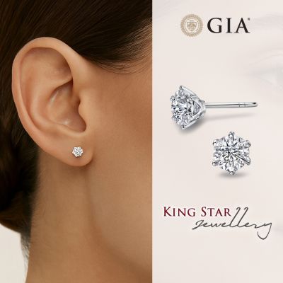 King Star GIA 60分最白D 3EX 天然鑽石耳環 經典六爪永恆(單邊1克拉視覺效果 / 八心八箭)