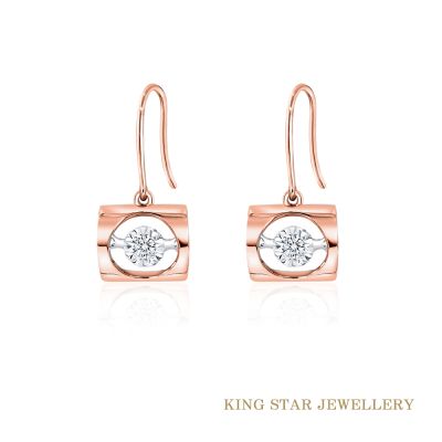 King Star 心心相映18K玫瑰金靈動天然鑽石耳環-耳勾式(單邊擁有20分視覺效果)