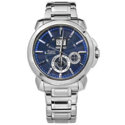 SEIKO 精工 Premier 人動電能 萬年曆 防水 不鏽鋼手錶-藍色/43mm