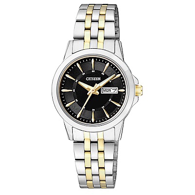 CITIZEN星辰 秀氣雙色調石英女錶 (EQ0608-55E)-黑色/27mm$3,980