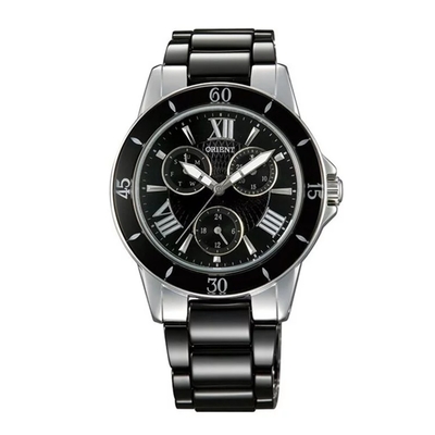 ORIENT 東方錶 DRESS系列 時尚晶鑽羅馬陶瓷女錶-黑/34mm