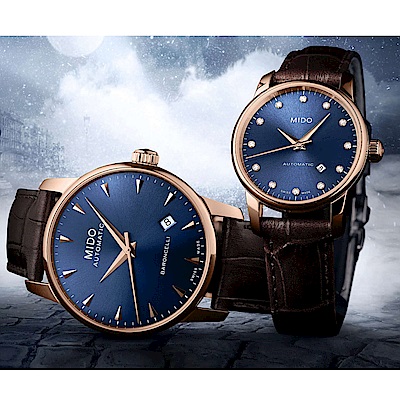 MIDO 美度 官方授權 Baroncelli 永恆系列 午夜藍 機械情侶手錶 對錶 1212購物節 送禮推薦 M0374071104101+M0372071104101$44,90785折