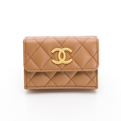 CHANEL香奈兒 23B 拉絲紋經典大雙C logo三折短夾/錢包(焦糖棕/金)$41,83089折