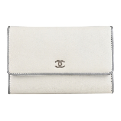 展示品CHANEL雙C雕刻金屬LOGO滾金邊牛皮3卡扣式中夾(白)$20,67089折