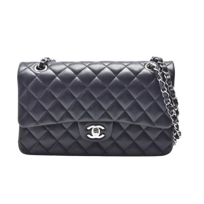 CHANEL 經典COCO菱格紋羊皮銀轉釦肩背/斜背包(25cm黑色)$332,8209折