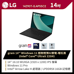 LG 樂金 Gram 14Z90T-G.AP55C2 14吋極致輕薄AI筆電(Ultra 5/16G/512GB/Win11 Pro/WUXGA/曜石黑)$39,900