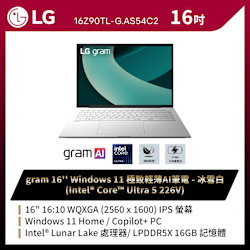 LG 樂金 Gram 16Z90TL-G.AS54C2 16吋極致輕薄AI筆電(Ultra 5/16G/512GB/Win11/WQXGA/冰雪白)$39,900