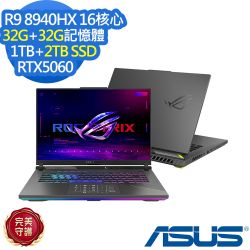 ASUS G614PM 16吋2.5K電競筆電 (Ryzen 9 8940HX/GeForce RTX 5060 8GB/16GB/1TB SSD/幻潮黑/ROG Strix G16)