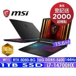 MSI微星 Katana 15 HX B14WEK-803TW 15.6吋電競筆電(i7-14700HX/16G/1TB SSD/RTX5050-8G/Win11)$38,900
