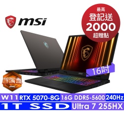 MSI微星 Crosshair 16 HX AI D2XWGKG-014TW 16吋電競筆電(Ultra 7 255HX/16G/1T SSD/RTX5070-8G/Win11)$54,900