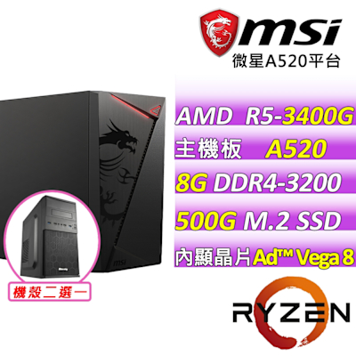 微星平台 AMD R5 四核{康平歲月}文書機(R5-3400G/A520/8GD4/500G)$8,246$8,680