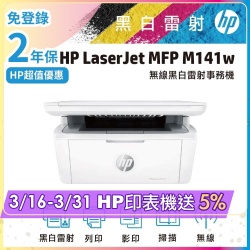 【HP惠普】 LaserJet M141w 黑白雷射多功能印表機 (7MD74A)